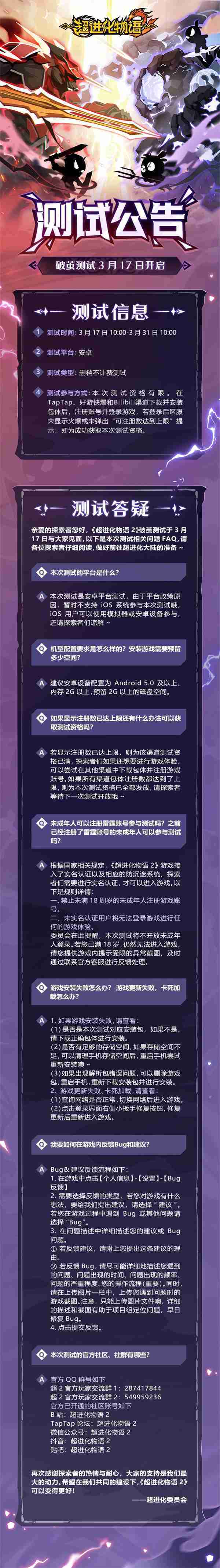 《超进化物语2》首次限号不计费删档测试——「破茧测试」将于3月17日开启,,随我们确认测试细节,,,,明天迈出踏上超进化大陆的第一步吧!!!!