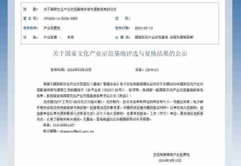 新一批国家文化产业示范基地公示,,,PA旗舰厅成功入围